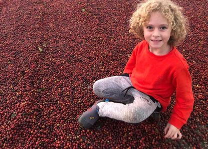 "Oi, meu nome é Theo e sou da sexta geração de cafeicultores. Esse é meu café pré histórico, o Dino Coffee. Minhas mãozinhas tiveram um trabalhão para colher esses grãos! Também aprendi sobre a natureza, o sol e o cultivo da terra. E me diverti um montão!Agradeço sua compra e desejo que a experiência com meu café seja especial e saborosa"
